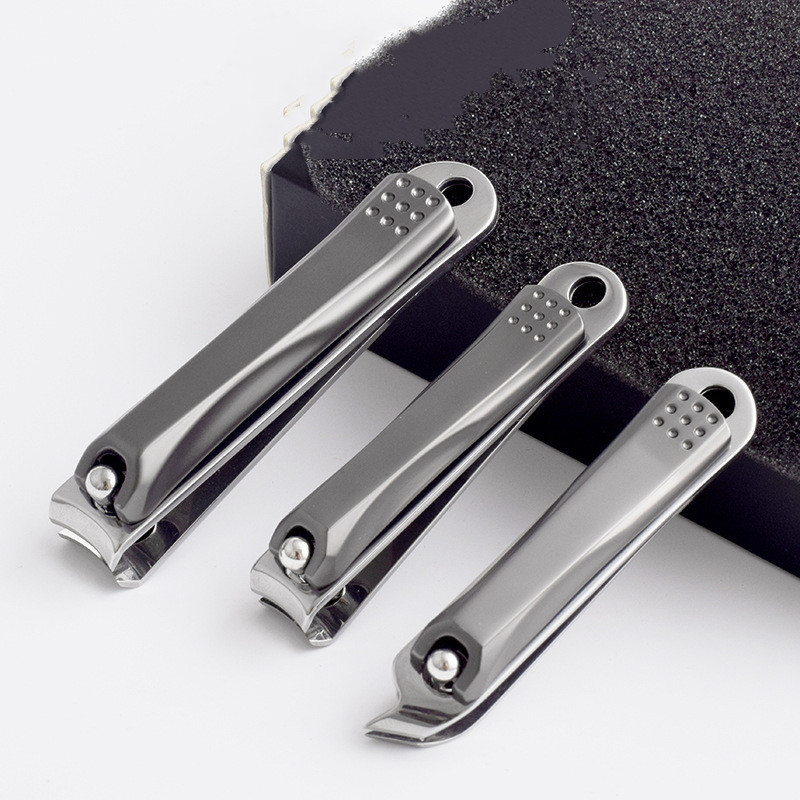 Product information: Material: stainless steel + zinc alloy Color classification: NCTZ074-gun black nail clipper 3-piece set Product category: manicure Size: 11.1×7.6×2.2cm Packing list: Nail clippers*3